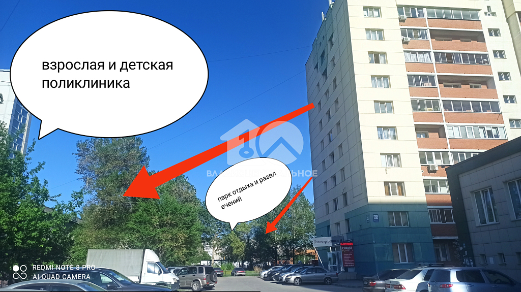 *Слева медицинские учреждения, справа церковь, за домом парк отдыха ...