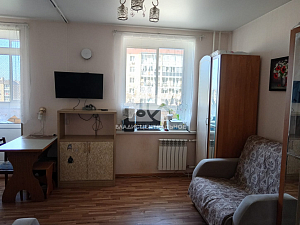 Светлая и просторная студия площадью 26,7 кв.м с евроремонтом идеально подойдёт для молодой пары или студентов, плюс просторная лоджия с панорамным остеклением 5,3 кв.м. Кирпичный новый дом 2020 года постро...