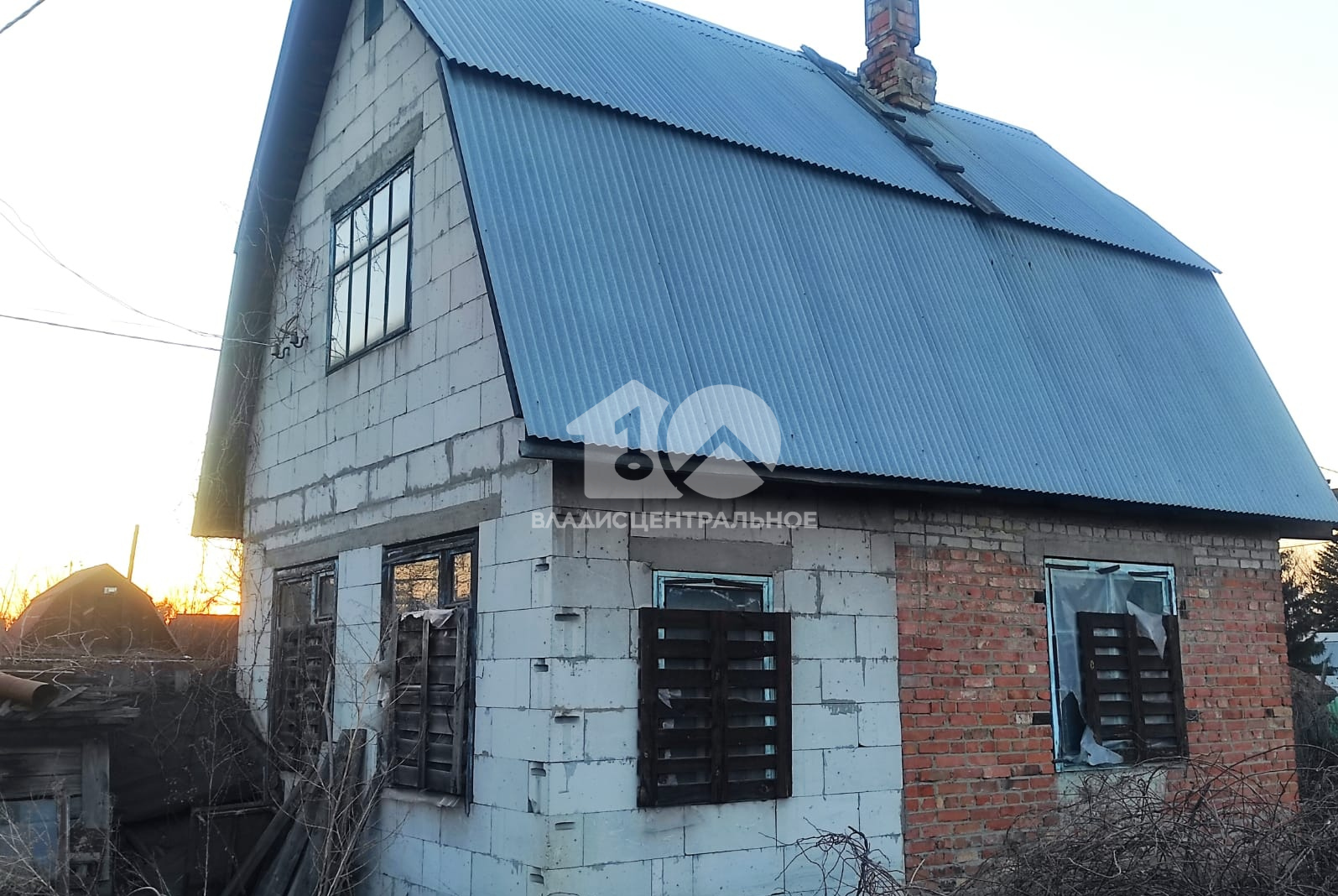 Построен в 2009 году из качественного кирпича, в черновой отделке. Общая площадь дома составляет 43,8 кв. м, жилая — 25,3 кв. м. В доме три комнаты, две из которых имеют площадь 15,4 кв. м и 9,9 кв. м, а также просторная кухня площадью 10 кв. м.