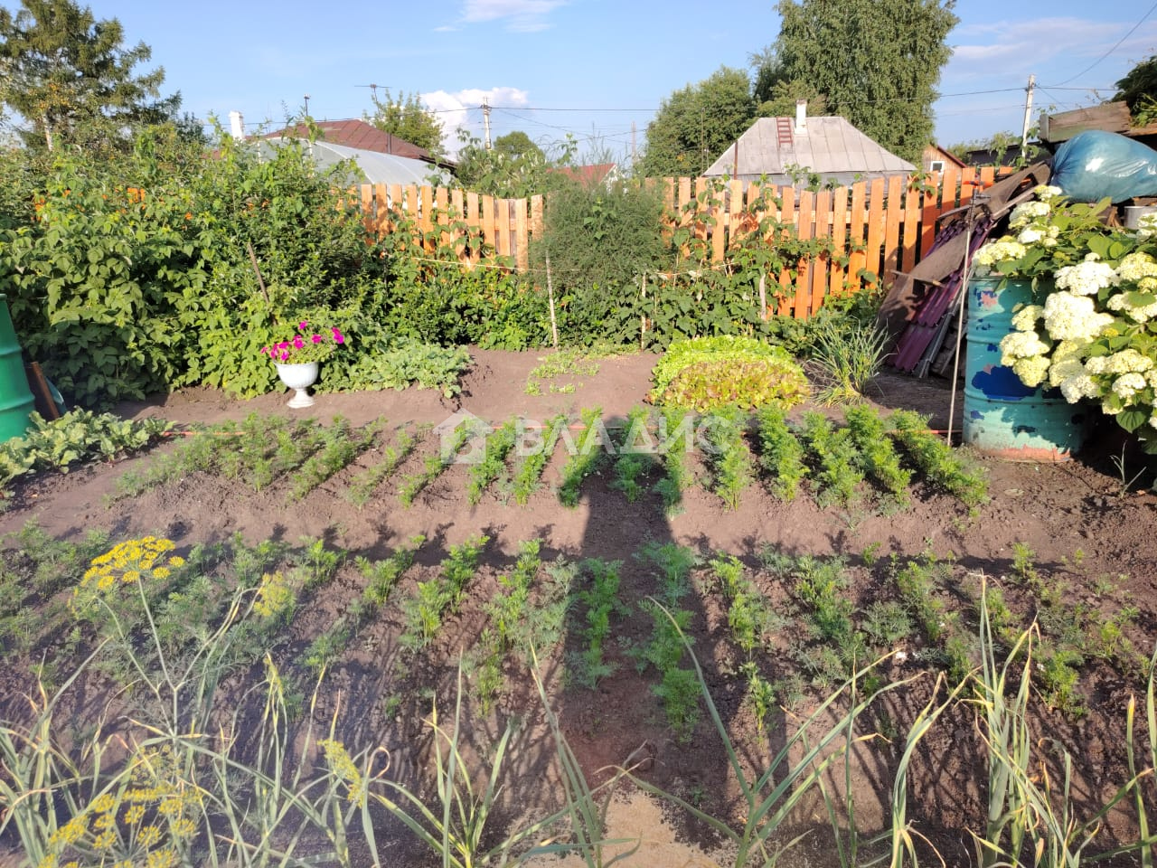 Огород ухожен.На территории огорода установлена 6 метровая телица. Много плодовоягодных кустарников.
