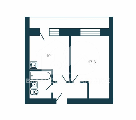 квартира общей площадью 36,4 кв м: комната - 17,3 кв. м, кухня - 10,1 кв. м, лоджия - 7,2 кв. м., совмещенный сан. узел - 4,5 кв.м.