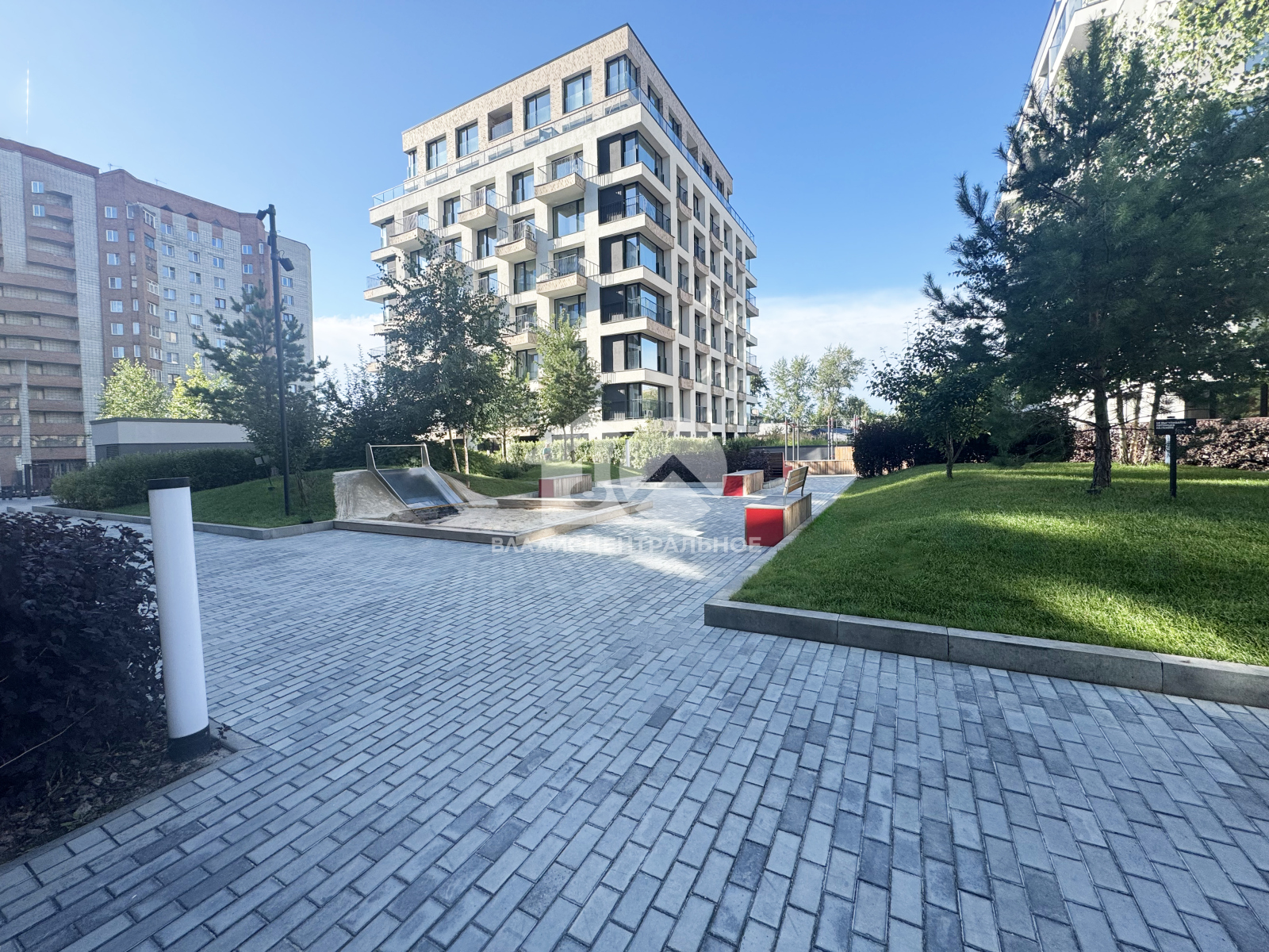 Территория дома огорожена и находится под охранной, стильный дизайн ландшафта, детских площадок и зон для отдыха.