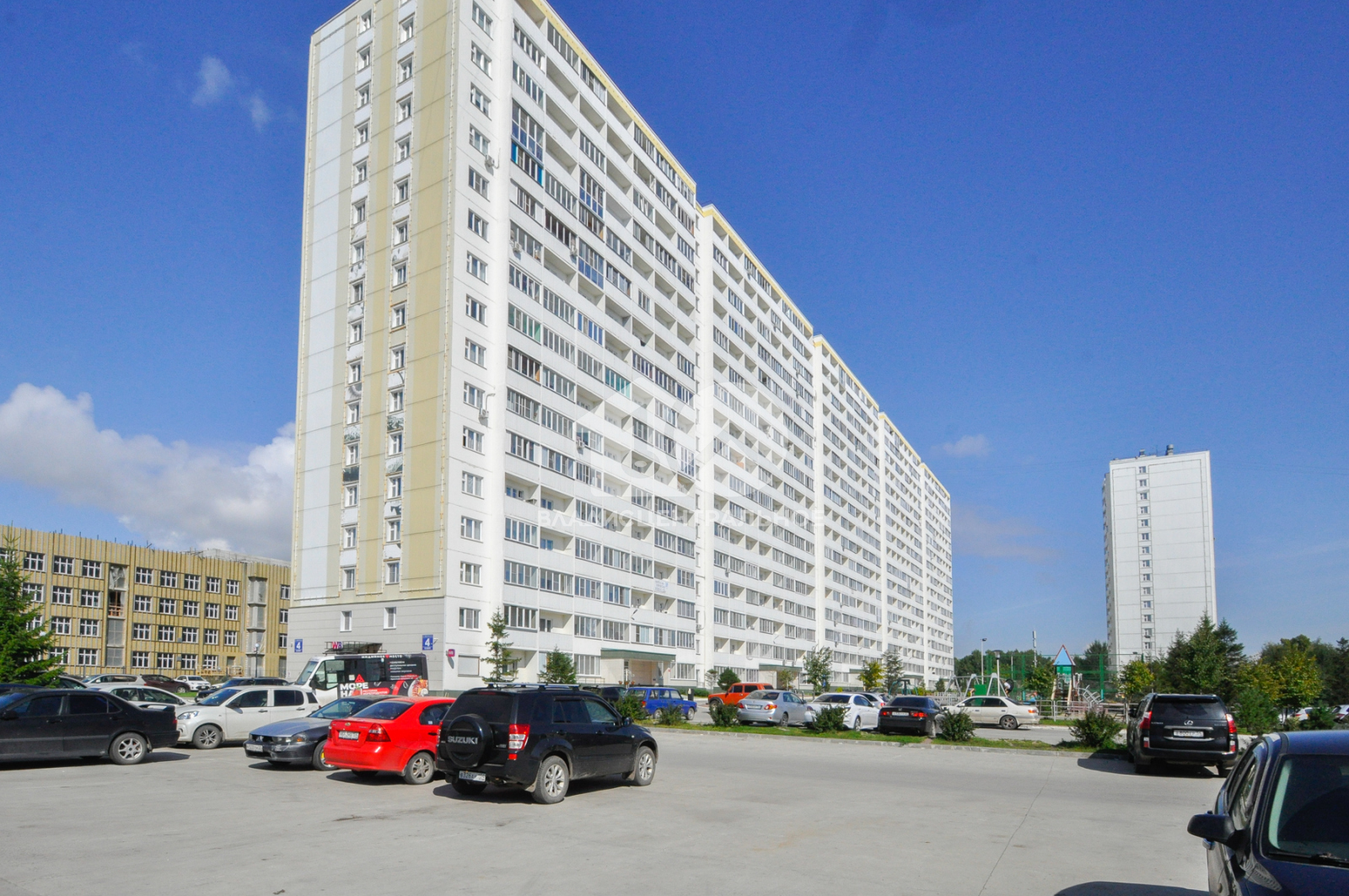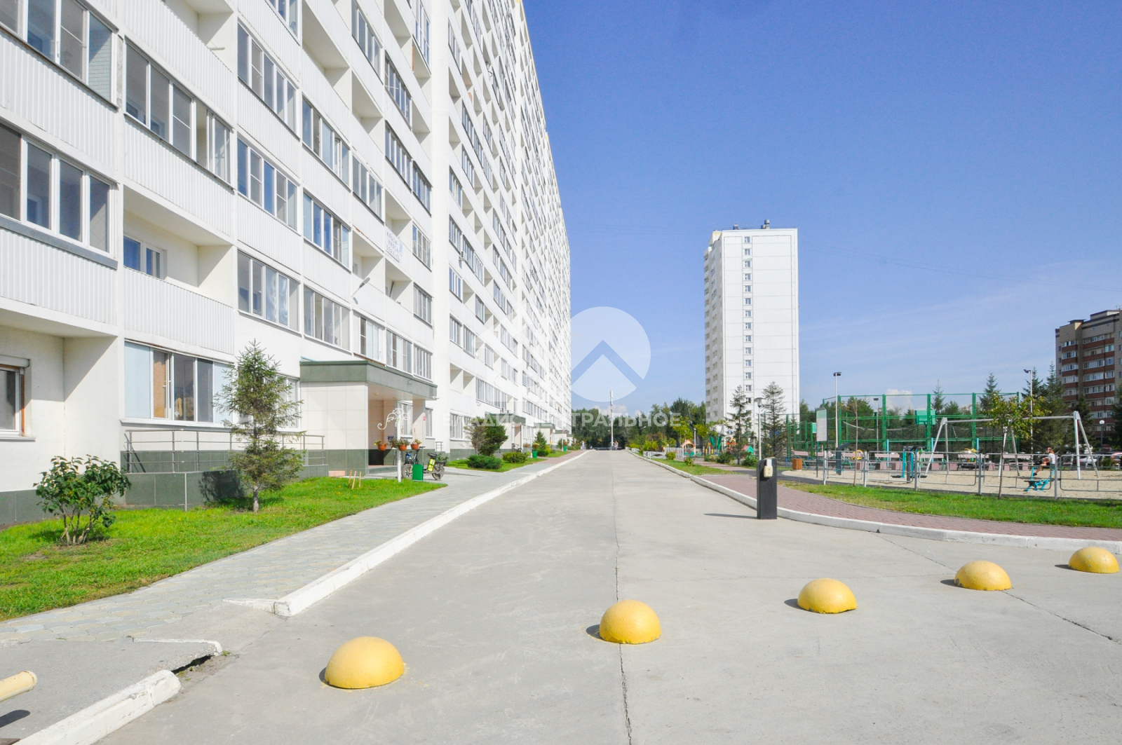 Территория 2х домов огорожена. Автомобилей у подъезда и детской площадки нет. Во дворе 2 новые, больших детские, баскетбольная и спортивная площадки. Много зелени. За всем этим хорошо и своевременно следит УК.