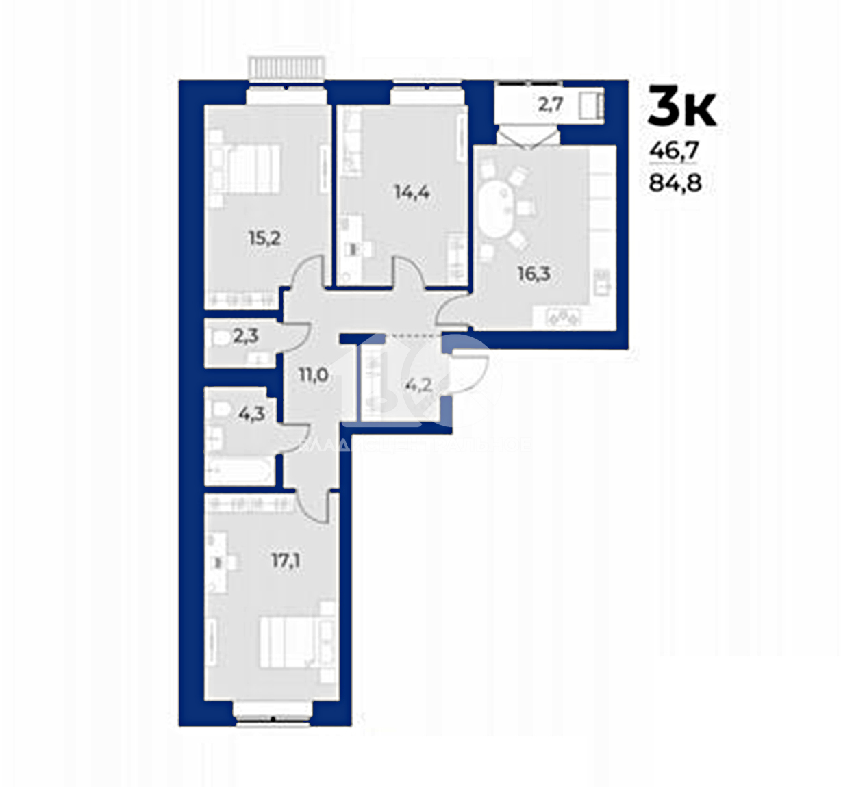 Квартира расположена на 9 этаже 24-этажного кирпичного дома. Общая площадь составляет 85 кв. м, из которых 50 кв. м — жилая площадь. Три изолированные комнаты (20 + 14 + 16 кв. м) обеспечивают комфортное размещение для всей семьи. Просторная кухня площадью 16 кв. м станет любимым местом для семейных ужинов и дружеских посиделок.