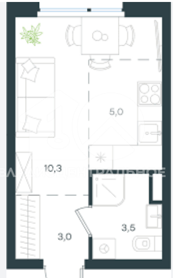 Студия имеет общую плoщaдь 18 кв. м, из котopыx 14 кв. м — жилaя площадь, а 4 кв. м занимает кухня. Высота потолков 2,7 м создаёт ощущение простора. В квартире сделан косметический ремонт, поэтому можно сразу заезжать и жить.