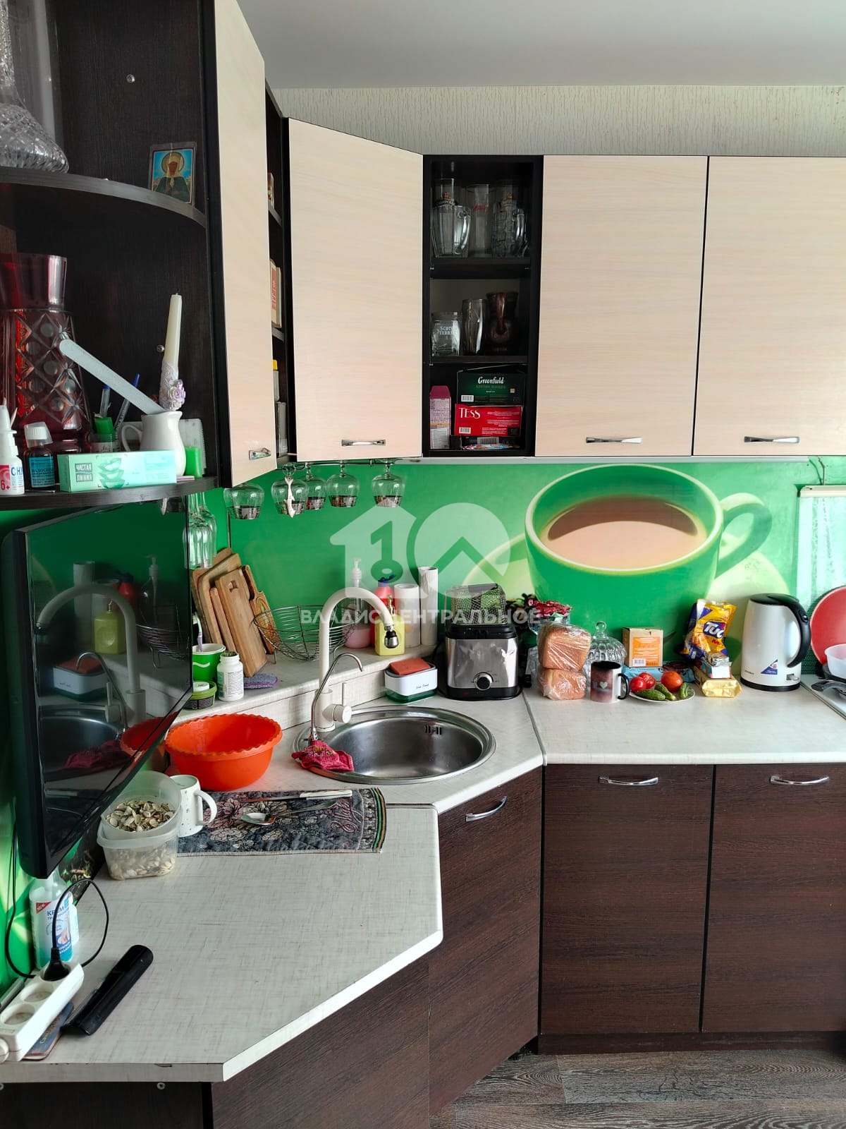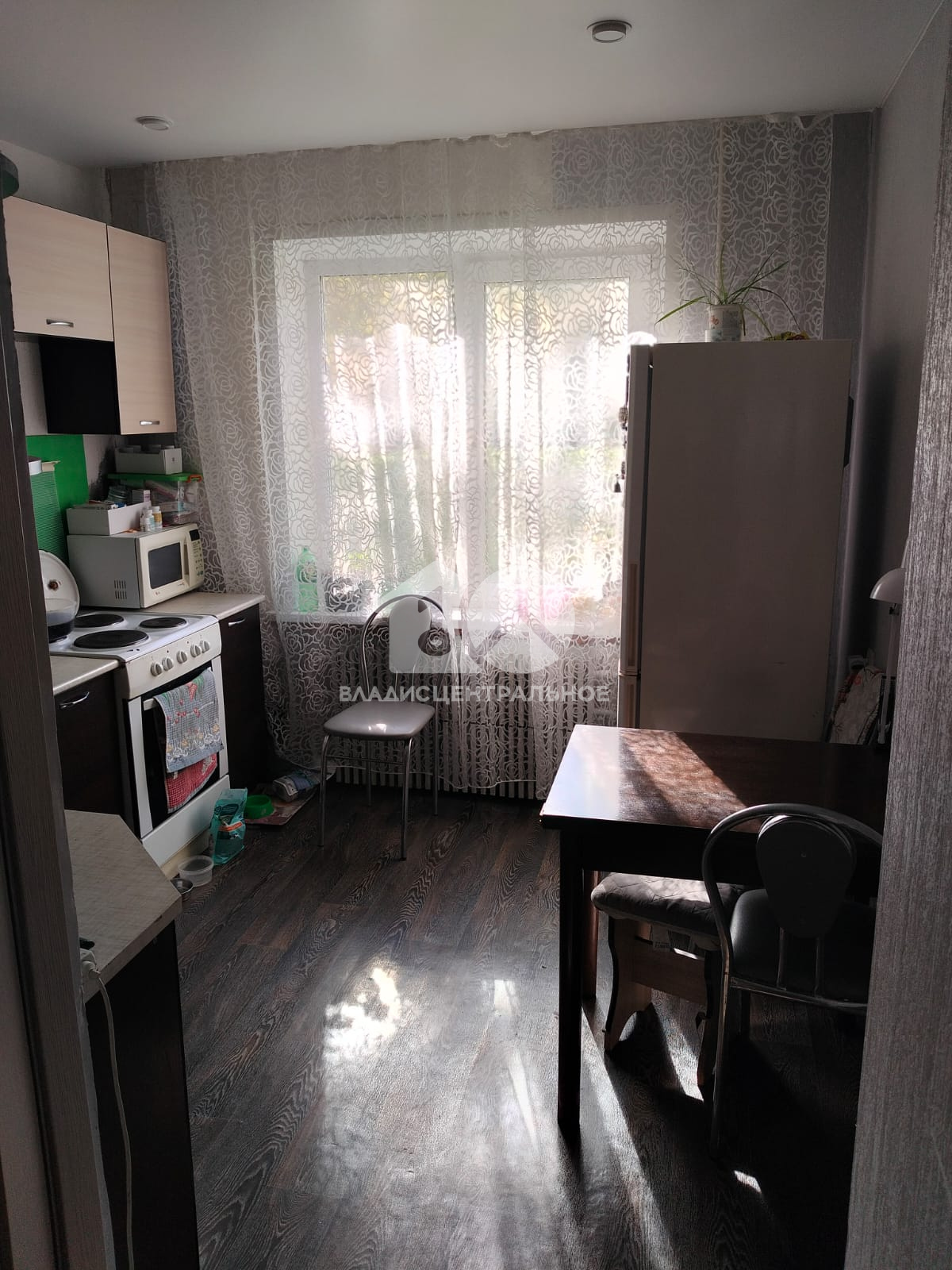 В квартире , частично , остаётся мебель и бытовая техника: кухонный гарнитур, эл. плита, микроволновая печь, стиральная машина, шкаф в прихожей, стенка в гостиной.