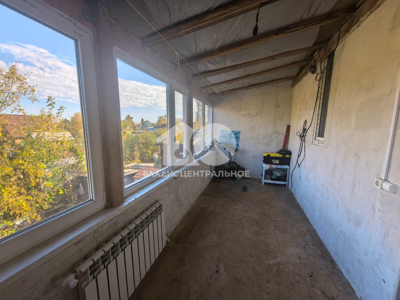 С правой стороны от дома расположена большая крытая бетонированная площадка, подходит для отдыха в летнее время или стоянке вашего автомобиля.