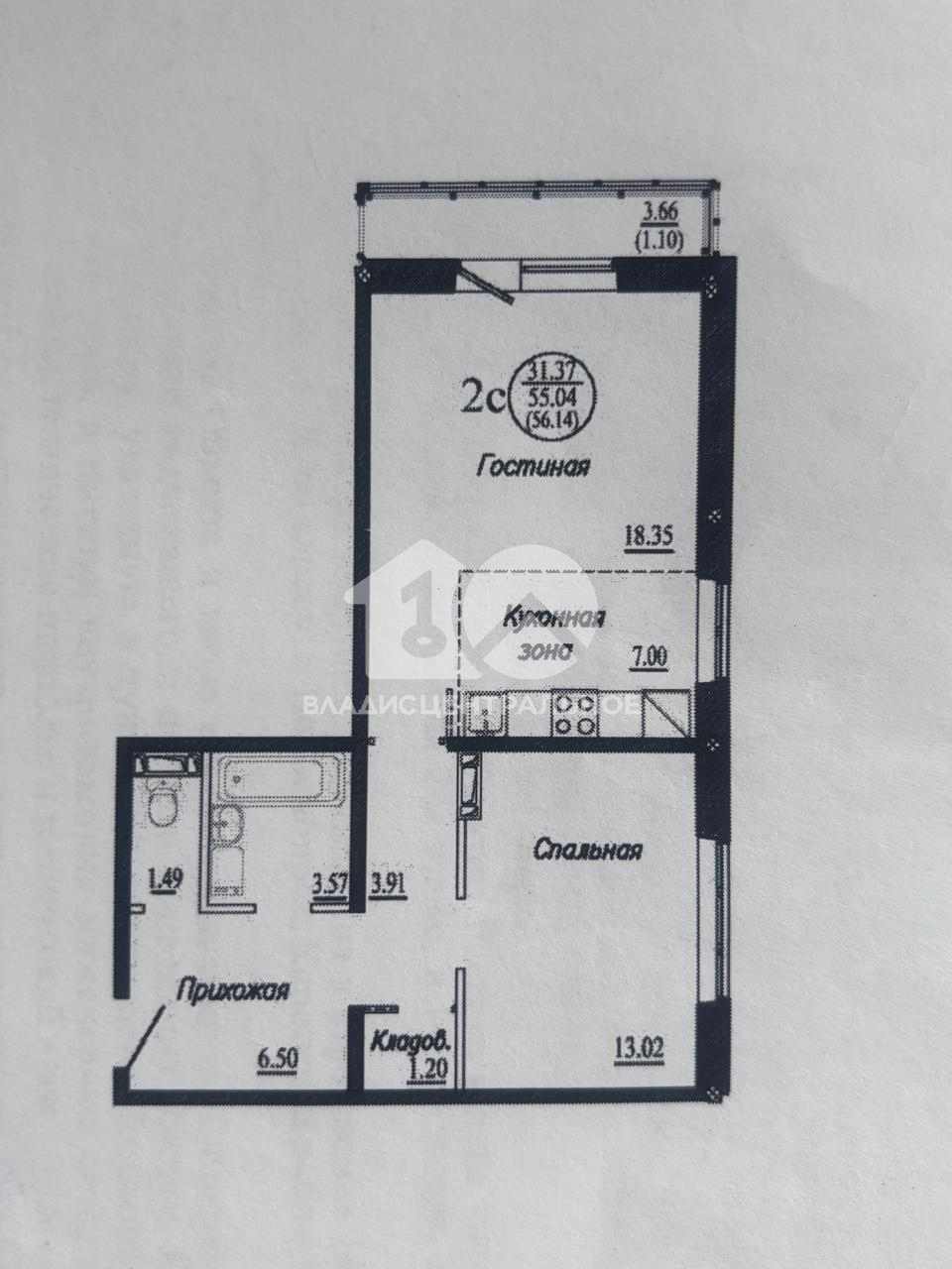 •Наличие балкона добавляет комфорта и уюта, площадь балкона 3,66 кв.м.