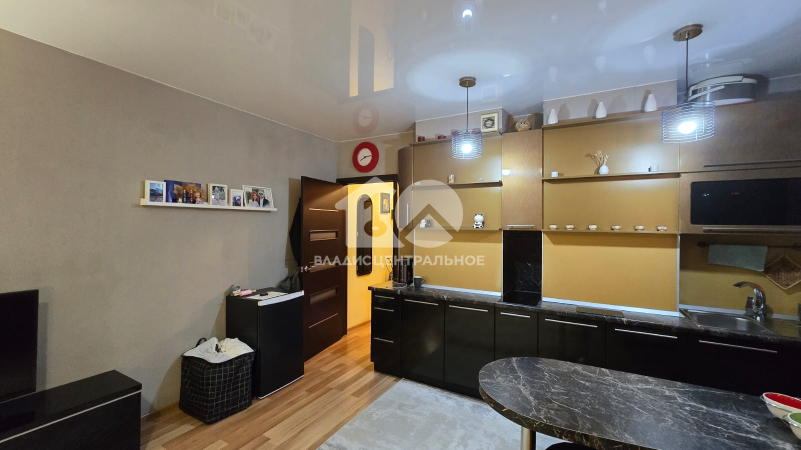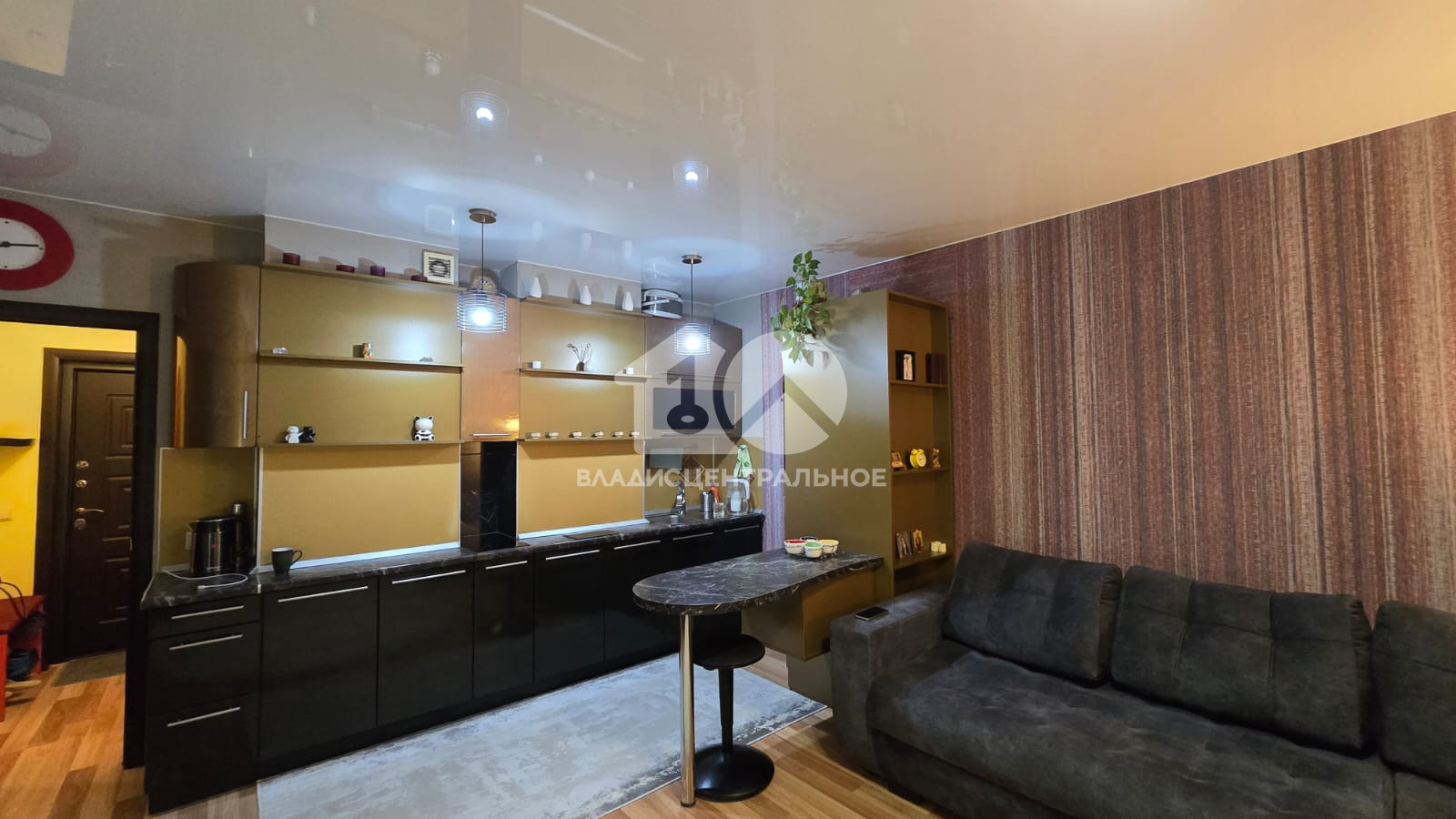 В квартире остается кухонный гарнитур, барная стойка, встроенные шкафы