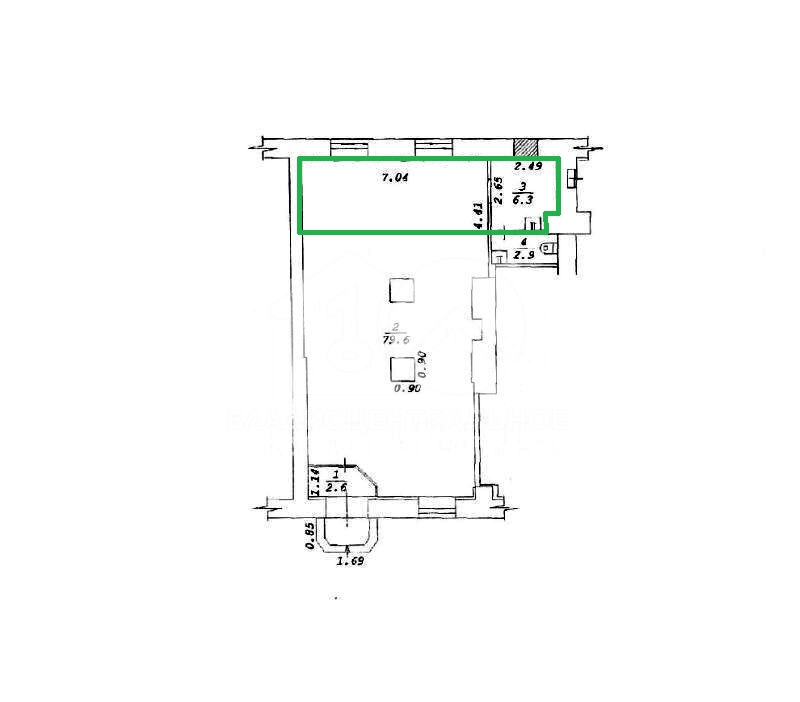 В аренде часть большого помещения с мокрой точкой