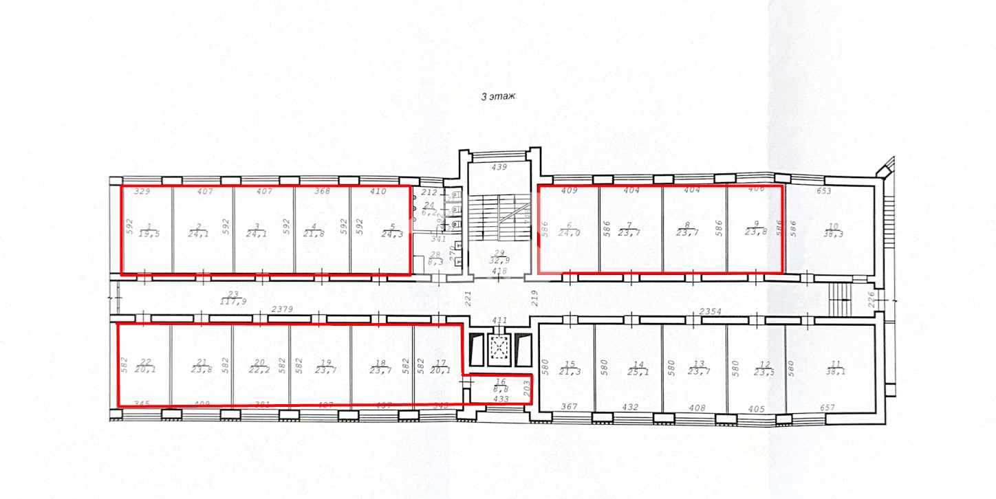 3. Планировкой предусмотрена кабинетная система (15 кабинетов от 19 до 24 кв. м)