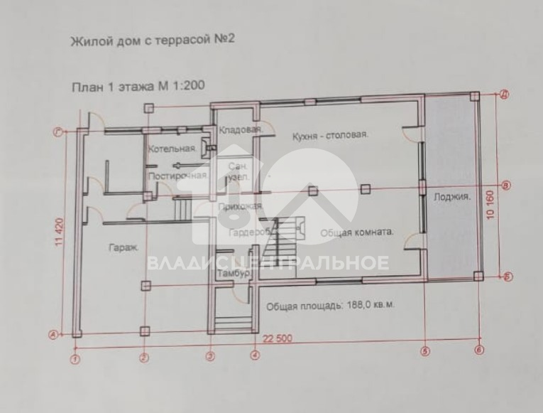 Общая площадь дома составляет 268,6 кв. м, жилая — 150 кв. м. На первом этаже расположена просторная кухня площадью 50 кв. м и другие помещения. Высота потолков достигает 3,5 метров, что создаёт ощущение простора и свободы. Дом без отделки, что позволяет новым хозяевам воплотить свои идеи в интерьере.